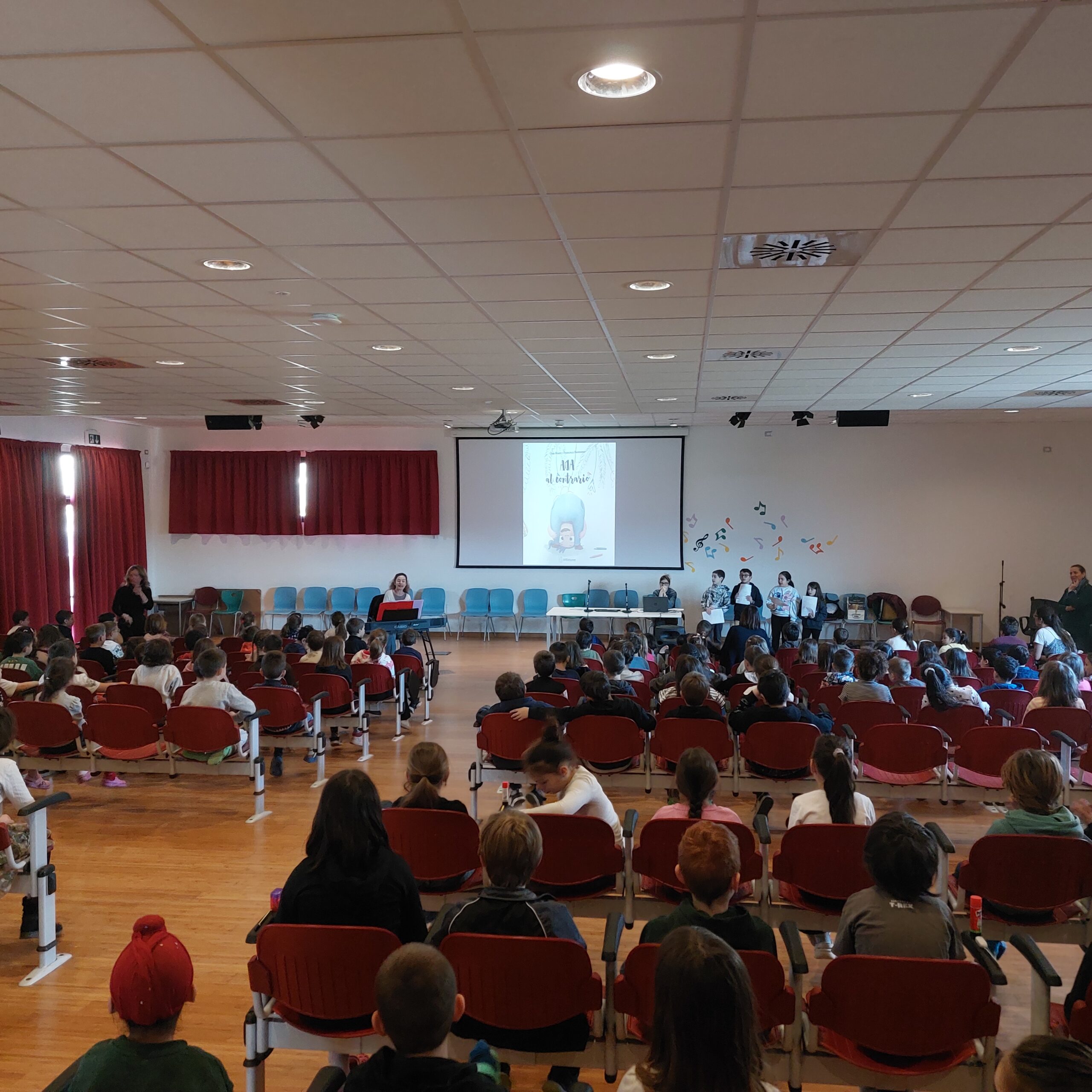 Durante la giornata, le classi hanno partecipato nell’auditorium della scuola prima all’ascolto dell’albo “ADA AL CONTRARIO” di Guia Risaria, illustrato da Francesca Bonanno . Il testo è stato visualizzato sulla LIM in CAA ( Comunicazione Alternativa Aumentativa) tradotto da Annalisa Ferrari. Le melodie e le canzoni della maestra Paola hanno accompagnato la lettura da parte dei bambini delle classi quarte e quinte: Greta, Ludovica, Beatrice, Eric, Matteo, Chiara, Brian e Noah con il supporto dell’educatrice Enza. Ada è una bambina che vive al contrario: Ada piange al contrario, cammina al contrario, mette le scarpe al contrario, gioca quando il maestro spiega e studia quando è ricreazione… Insomma Ada con gioia e indifferenza procede in direzione ostinata e contraria esattamente come a lei viene naturale essere e fare.